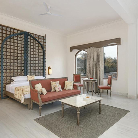 The property features 76 luxurious rooms and suites, thoughtfully designed with spacious interiors, private sit-outs, and select rooms offering exclusive plunge pools overlooking the hills. Every space is curated to deliver unmatched comfort with premium bedding, elegant décor, and personalized hospitality—qualities that define the best resort in Udaipur experience.